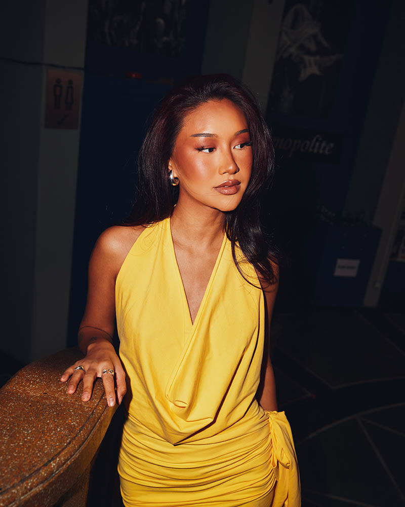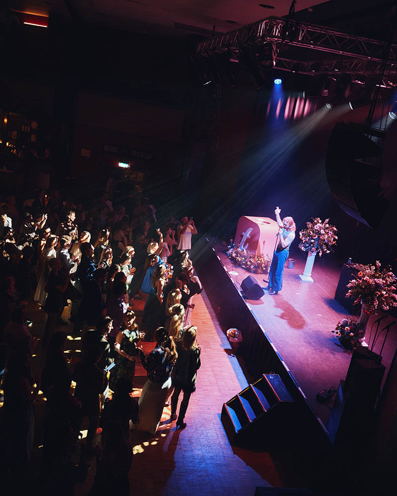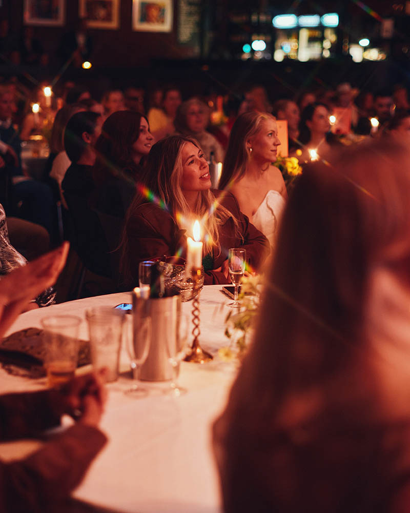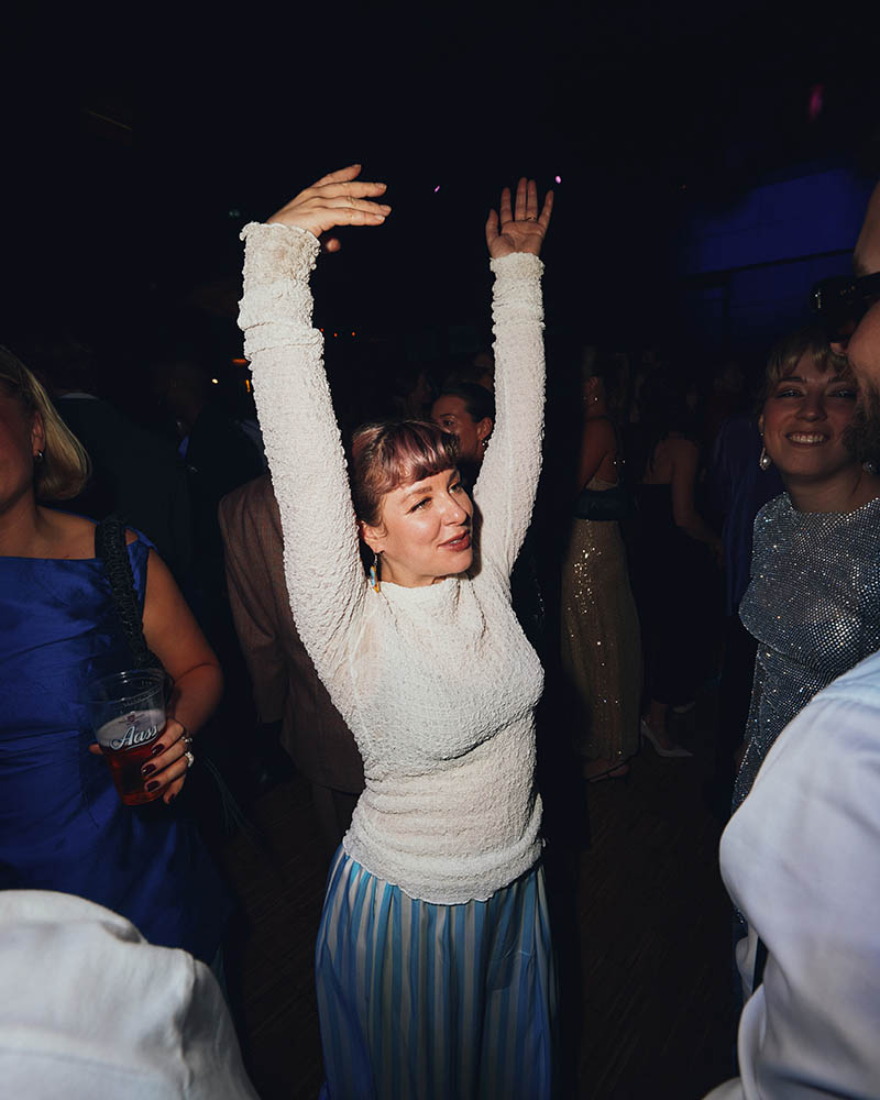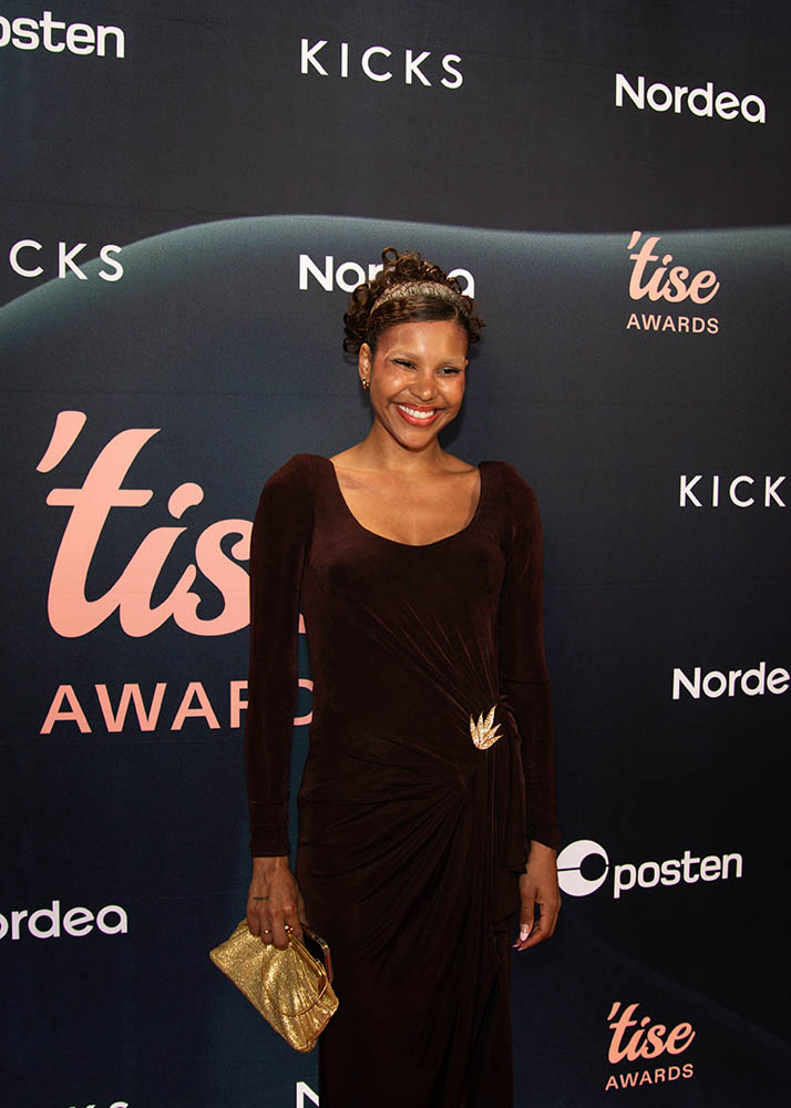 Øyunn Krogh på Costume Awards 2024, kledd i brudekjole kjøpt på Tise.
