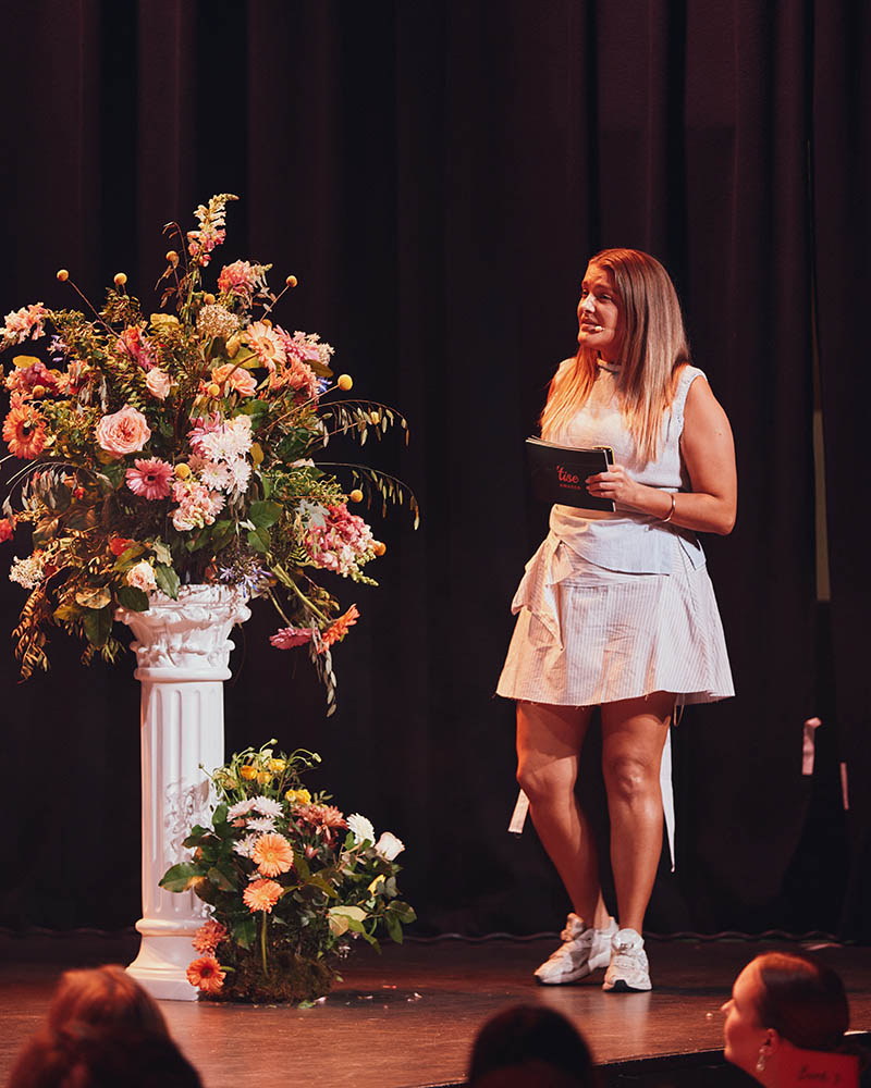 Anniken Jørgensen på Dior-event, iført sin egen brudekjole.