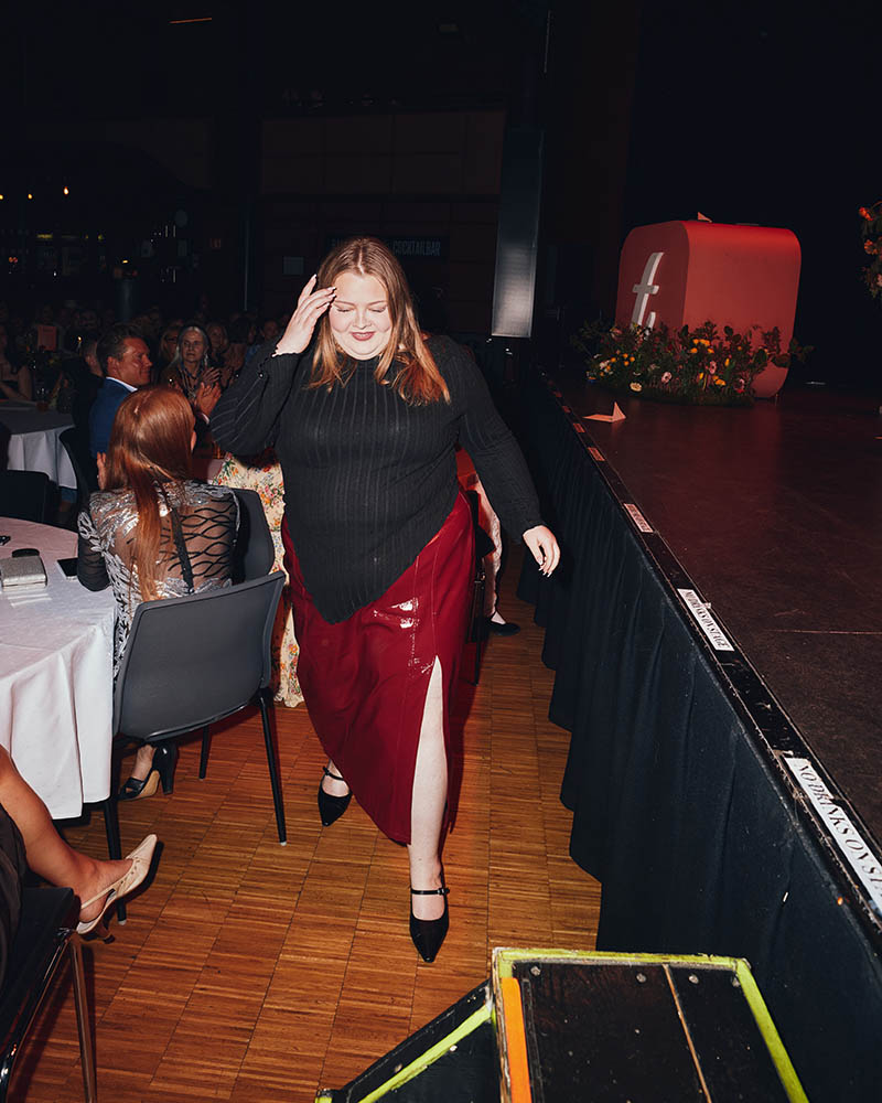 “Folkets favoritt” er en som aldri slutter å imponere. Vinneren har etablert seg som en tydelig stemme i offentligheten, og inspirerer oss med sin kjærlighet for secondhand, sin stilsikre væremåte og sitt engasjement for mer mangfold i bransjen. Med initiativer som plus size-byttemarked og vintage merch-kolleksjon, er det tydelig at hun bruker innflytelsen sin til å løfte frem gjenbruk og mer bærekraftige løsninger. Vinneren oppleves som tro mot sin egen merkevare, og det er ingen tvil om at hun betyr mye for mange og fortjener tittelen som “Folkets favoritt”!